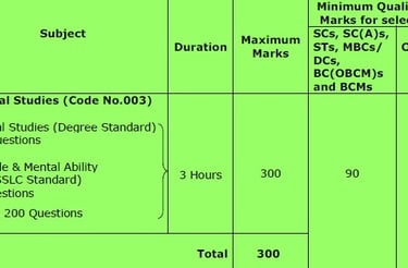 General Tamil (S.S.L.C. Standard) (100 questions) + General Studies (Degree Standard)(75 questions) &Aptitude and Mental Ability Test (S.S.L.C. Standard) (25 questions)